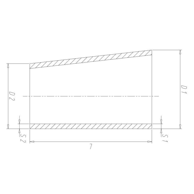 Alu exzentrisches Reduzierstück 90 x 5 / 60 x 5 mm, ähnl. DIN 2616-1, aus EN AW-6060, AlMgSi0,5