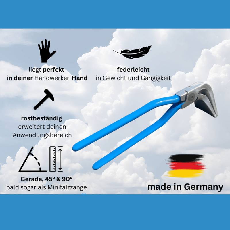 Produktsicherheit: Diese Falzzange ist nicht für Schlagarbeiten geeignet und sollte ausschließlich mit einer Handkraft von bis zu 50 kg genutzt werden, um eine Verformungen des hochwertigen Materials zu vermeiden.